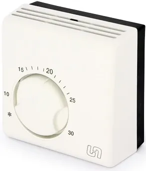 Термостат Uni-Fitt комнатный механический НО/НЗ со светодиодом и выключателем модель ТА5 предназначен для индивидуального управления температурой воздуха в помещении по встроенному датчику. Для управления необходимо электрическое подключение к управляемым устройствам (термоэлектрическим или сервоприводам, насосам, котлам). Тип термостата НО / Н3, тип коммутации – реле, коммутируемое напряжение – 250 В, коммутируемый ток – 16 (2,5) А.