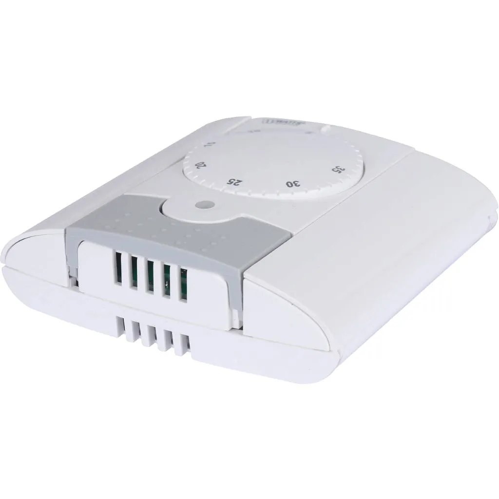 Режим работы: комфортный. Светодиодная индикация состояния. Диапазон регулирования: 5 - 35 °C с шагом 0,5 °C. Гистерезис 0,5 °C. Степень защиты IP 30.