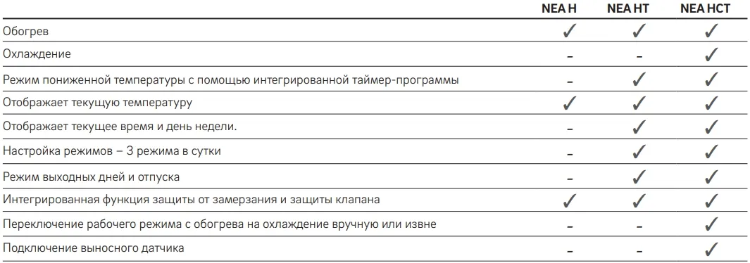 - включение режима пониженной температуры путём использования программы внутреннего или внешнего цифрового таймера Nea;