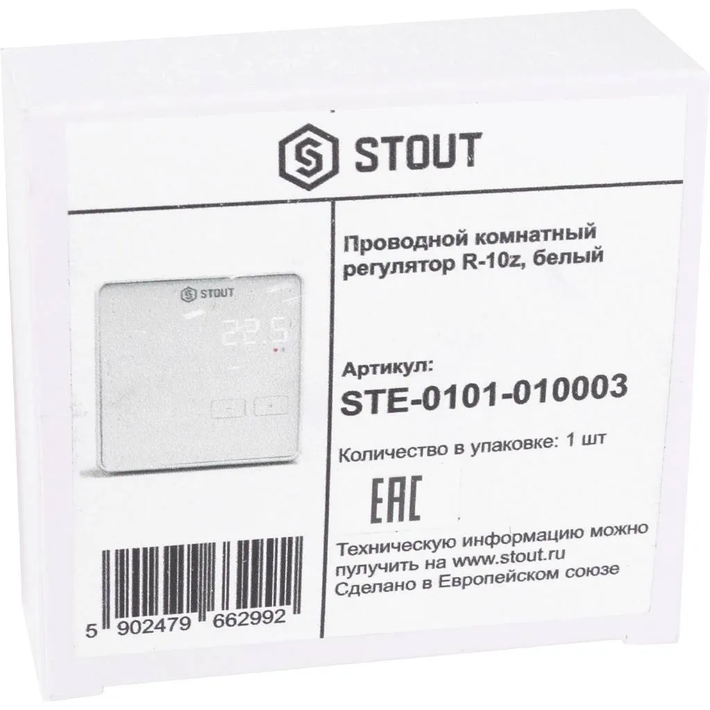 Комнатные регуляторы R-10z STOUT устанавливаются в отдельных зонах обогрева и отправляют информацию о текущей температуре в комнате к контроллеру. Контроллер, основываясь на полученных данных, управляет приводами термостатических клапанов (открывая их, когда помещение нуждается в обогреве и закрывая после достижения температуры в помещении заданных значений). Текущая температура в комнате отображается на дисплее регулятора. Температура может задаваться как с постоянным значением, так и с временным изменением, когда необходимо повысить или понизить температуру в комнате на определенный срок.