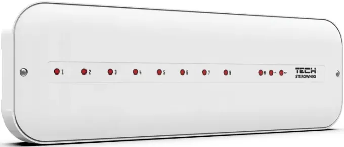 Монтажная планка TECH L-5s – это контроллер, который на основе сигнала от комнатных терморегуляторов управляет работой термоэлектрических приводов, расположенных на распределительном коллекторе. Данный контроллер является проводным, т.е. передача сигнала, а также питание контроллера происходит по проводам.