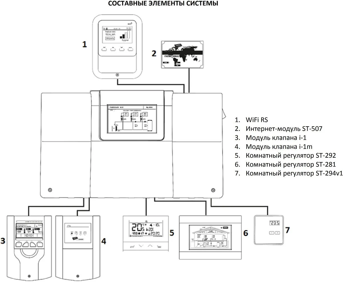 - Возможность подключения модуля ST- 507 Ethernet или WiFi RS — делают возможным управление функциями контроллера и просмотр текущих параметров с помощью Интернет.