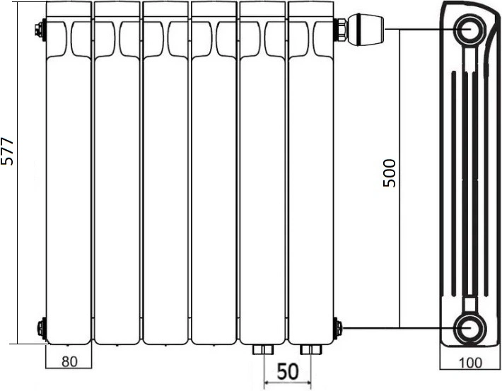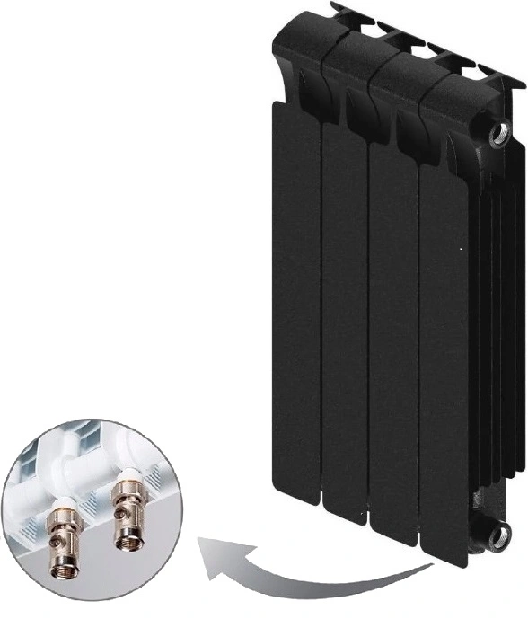 Характеристики товара Радиатор биметаллический 4 секции нижнее правое подключение Rifar Monolit Ventil 500 черный RMVRF50004 ant