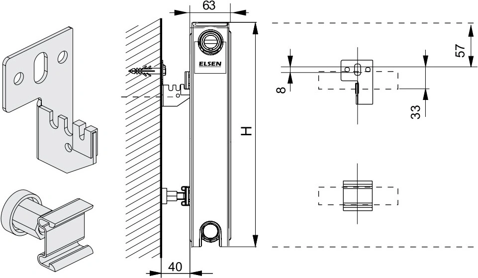 КОМПЛЕКТАЦИЯнастенный крепеж, 2 кронштейна, заглушка, кран Маевского, вентильная вставка Heimeier M30x1,5