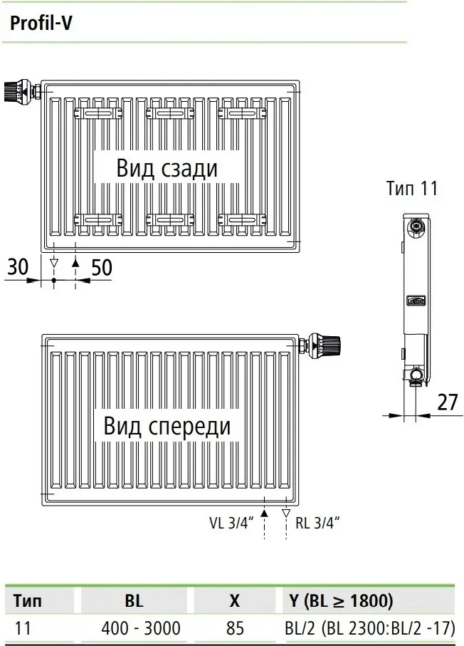 Характеристики товара Радиатор стальной панельный Kermi Profil-V тип 11 900 x 2000 мм FTV110902001R2Y