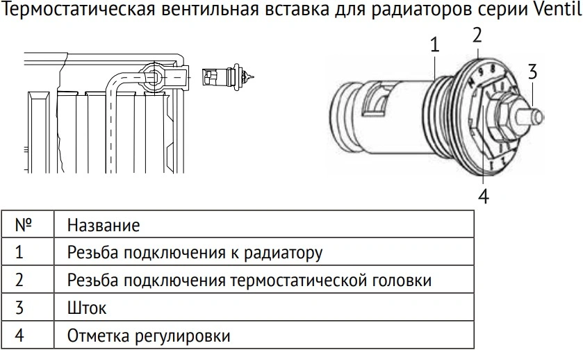 КОМПЛЕКТАЦИЯнастенный крепеж, 2 кронштейна, заглушка, кран Маевского, ключ, шаблон, 2 кронштейна решетки, вентильная вставка M30x1,5