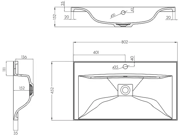 Диаметр отверстия под смеситель3.5 см