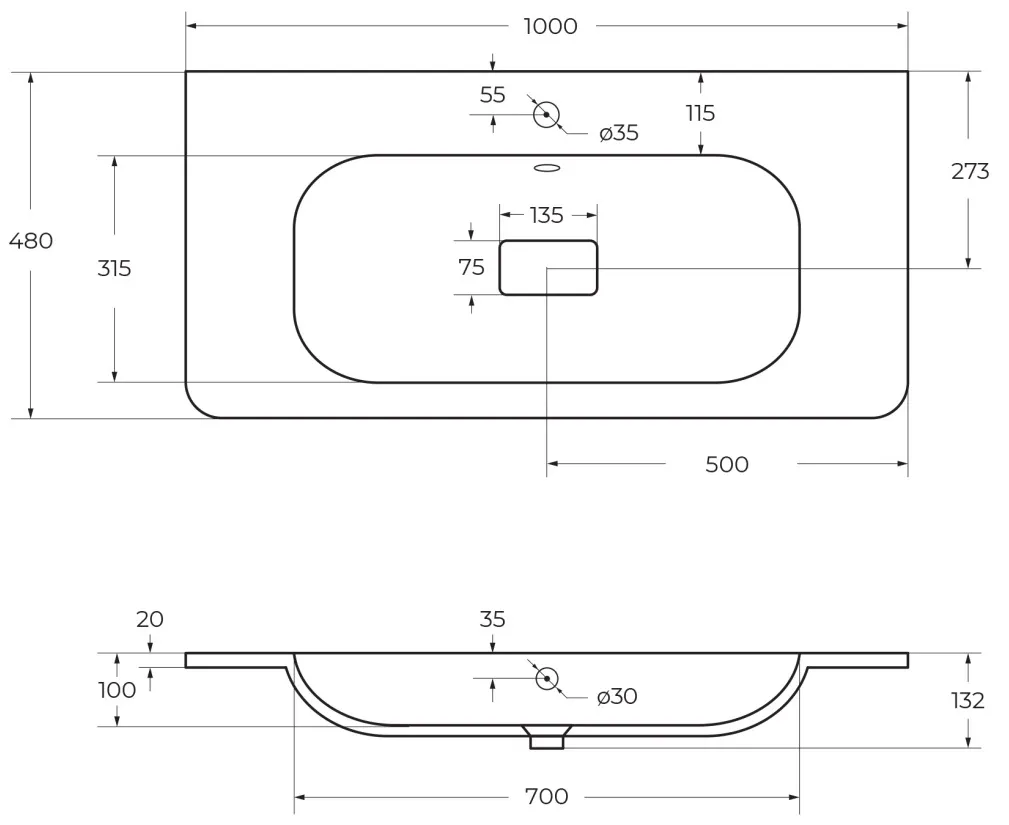 Характеристики товара Раковина Cezares 100 белый CZR-1000/480-LV-MR-NV
