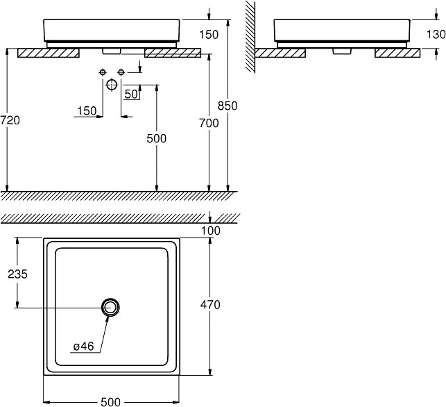 Отверстие под смесительбез отверстий
