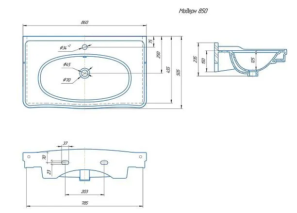 Характеристики товара Раковина Kirovit Модерн 85 белый 4640021065891