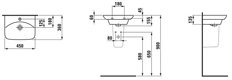 Характеристики товара Раковина Laufen Palace 45 белый 8.1570.1.000.104.1