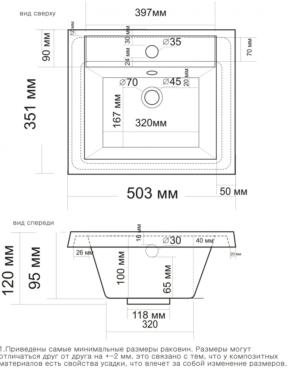 Диаметр отверстия под смеситель3.5 см