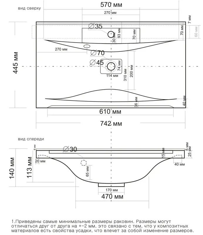 Диаметр отверстия под смеситель3.5 см