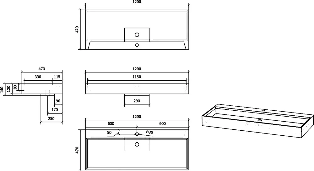 Характеристики товара Раковина Raval Facet 120 бетон Fac.08.120/Bet/RL