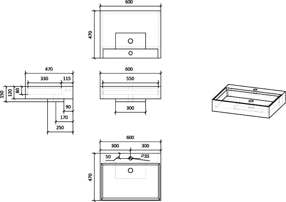 Характеристики товара Раковина Raval Facet 60 бетон Fac.08.60/Bet/RL