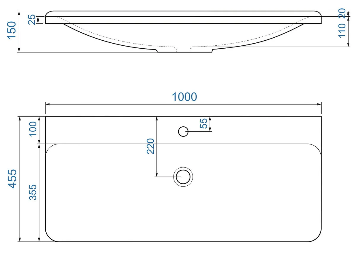 Отверстие под смесительна 1 отверстие