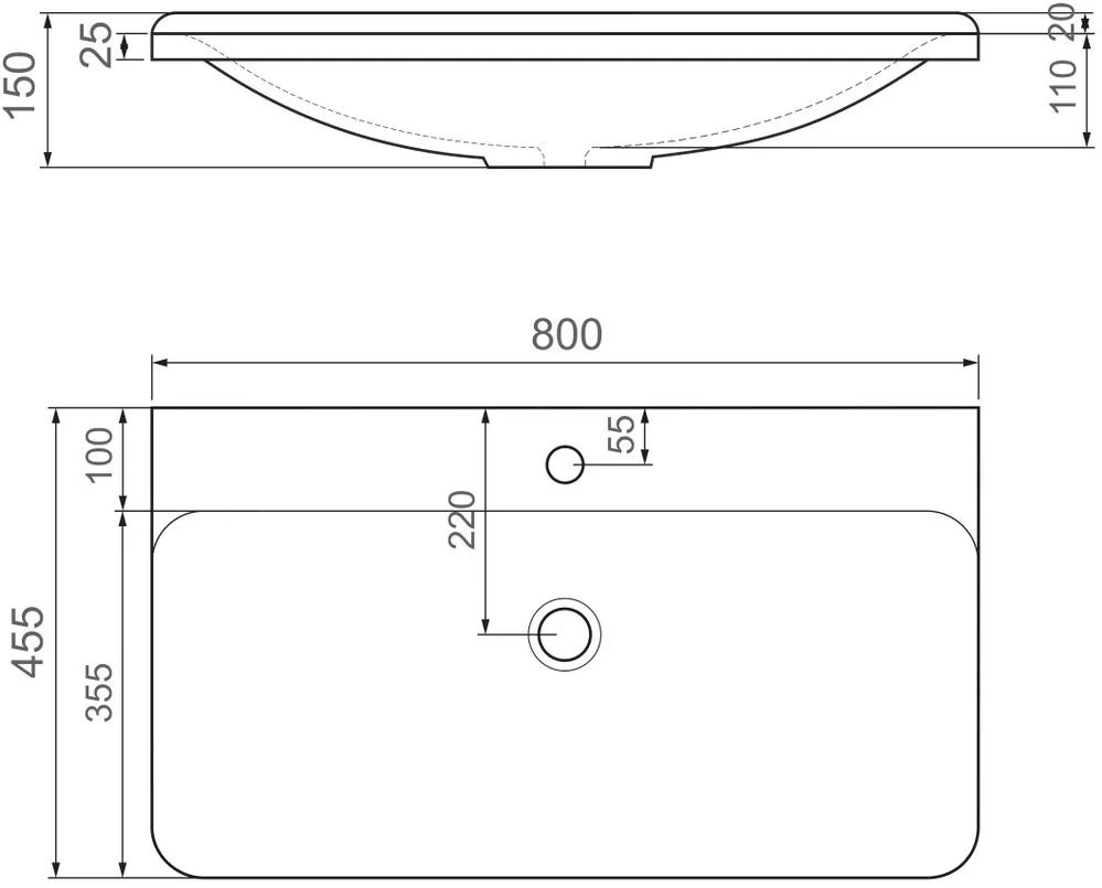 Характеристики товара Раковина Raval Solo 80 белый Solo.08.80/W/RL