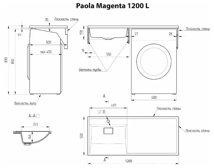 Характеристики товара Раковина Ulgran Paola Magenta 120 L белый 4660105230694
