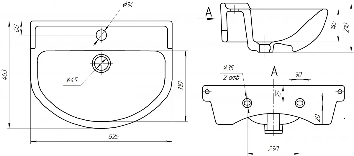 Характеристики товара Раковина Универсал Амур 60 белый 4607152361513