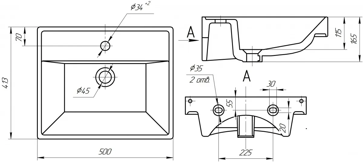 Характеристики товара Раковина Универсал Енисей 50 белый 4607152361544