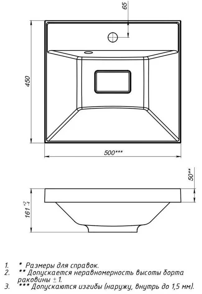 Характеристики товара Раковина Versalia Bazis 50 белый 4670142930556
