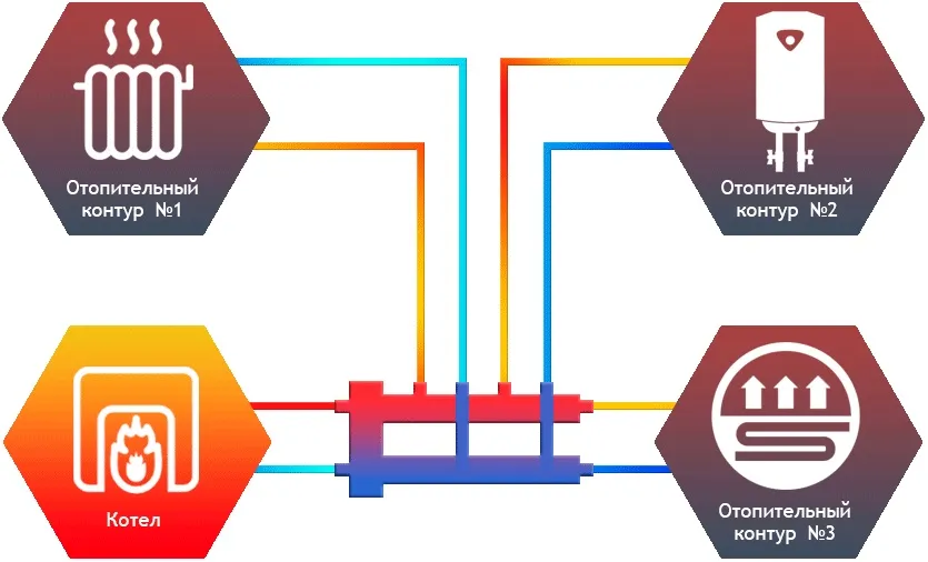 Характеристики товара Распределительный коллектор 3 контура с гидрострелкой 1¼"н x 1"н Север-М2+1(Aisi) 1915026