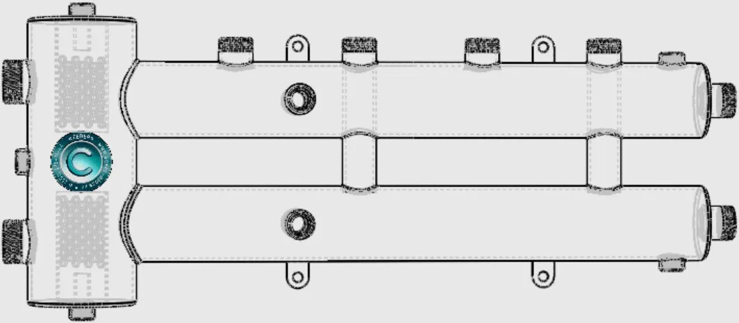Характеристики товара Распределительный коллектор 3 контура с гидрострелкой 1¼"н x 1"н Север-R-М2+1 1945059