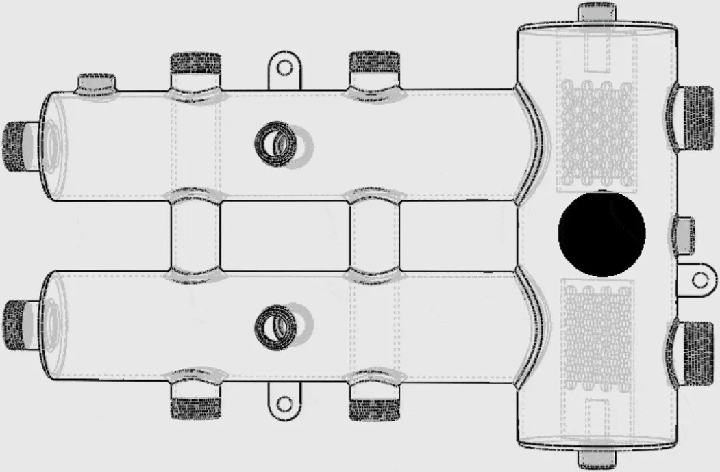 Характеристики товара Распределительный коллектор 3 контура с гидрострелкой 1¼"н x 1"н Север-R-М3 1945009
