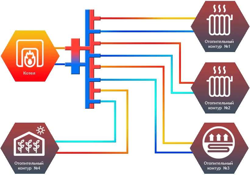 Распределительный коллектор 4 контура с гидрострелкой 1¼"н x 1"н Cевер-V4 1925013