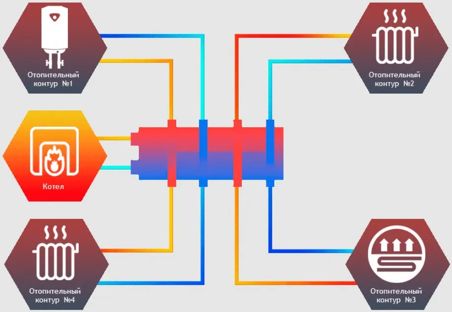 Характеристики товара Распределительный коллектор 4 контура с гидрострелкой 1"н x ¾"н Север-Мини4 1925090