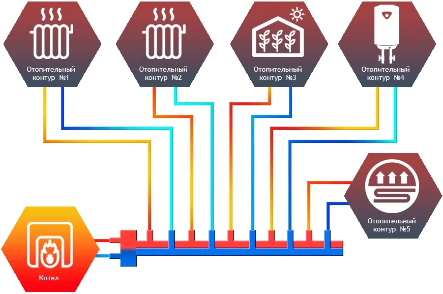 Распределительный коллектор 5 контуров с гидрострелкой 1¼"н x 1"н Север-Т5 1925062