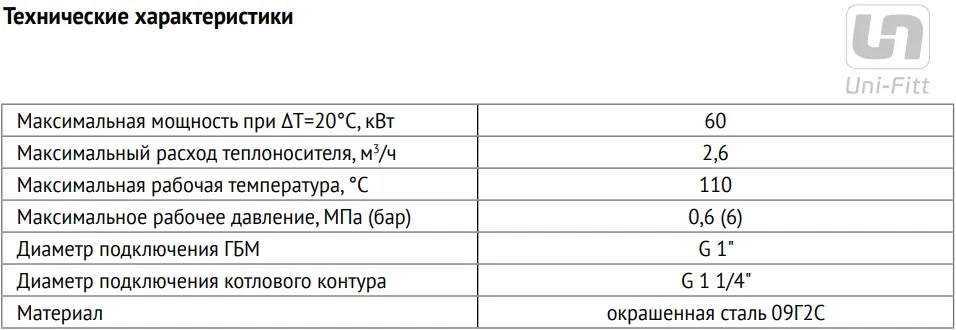 Диаметр подключения резьбовой первичного (котлового) контура1¼ "