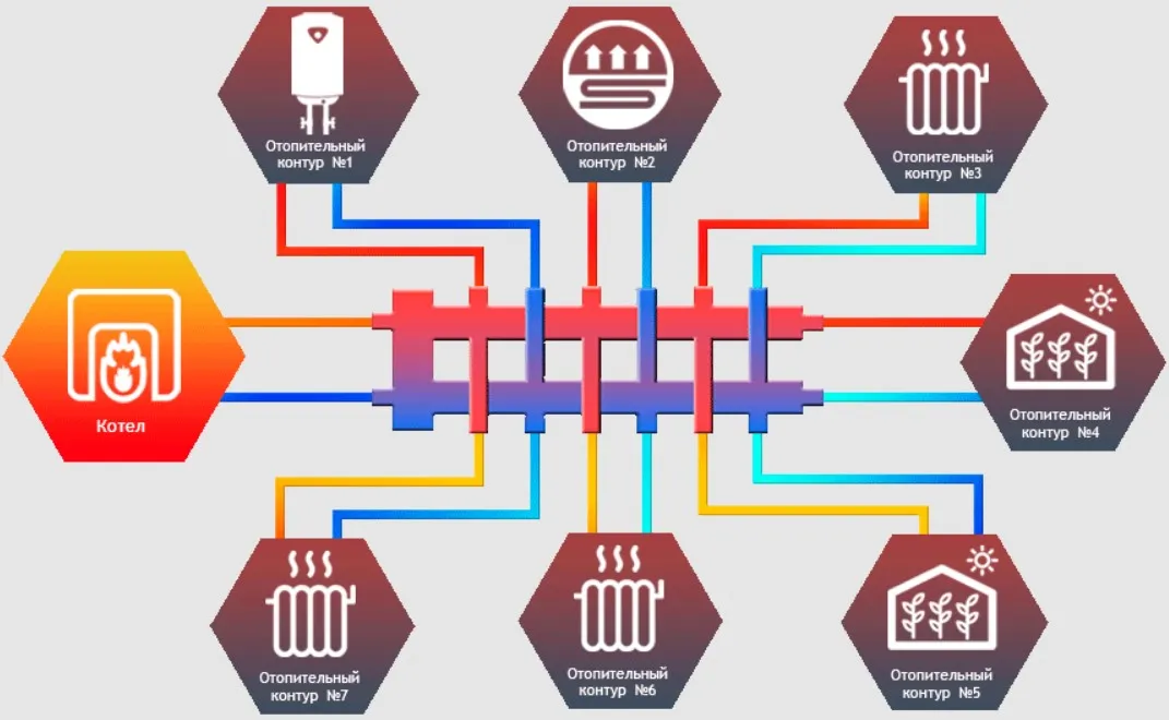 Характеристики товара Распределительный коллектор 7 контуров с гидрострелкой 1¼"н x 1"н Север-М7(Aisi) 1915052