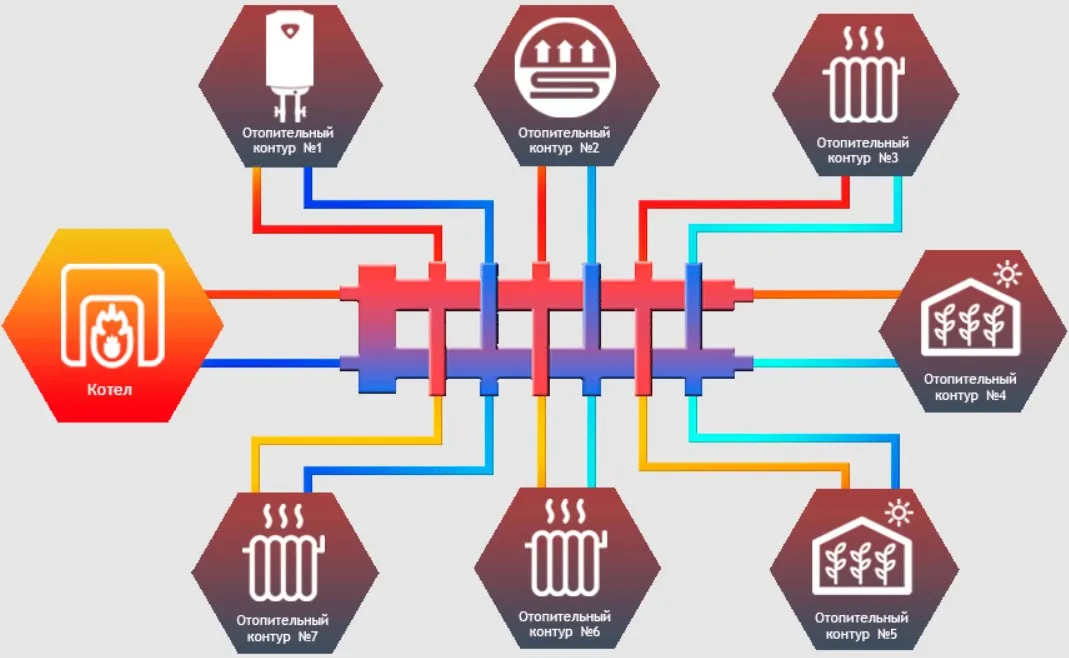 Характеристики товара Распределительный коллектор 7 контуров с гидрострелкой 1¼"н x 1"н Север-R-М7(Aisi) 1955052