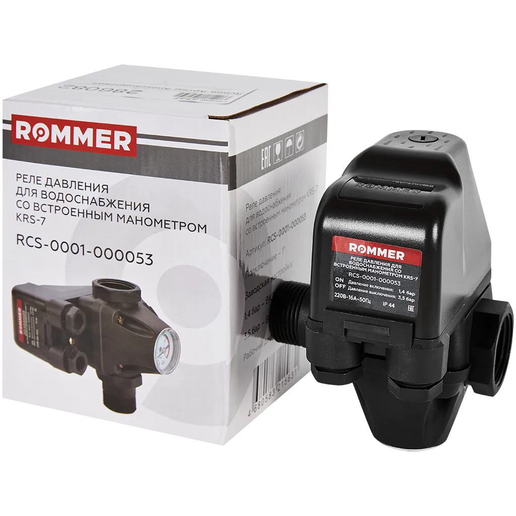 Характеристики товара Реле давления с манометром и 3-х выводным штуцером Rommer KRS-7 RCS-0001-000053