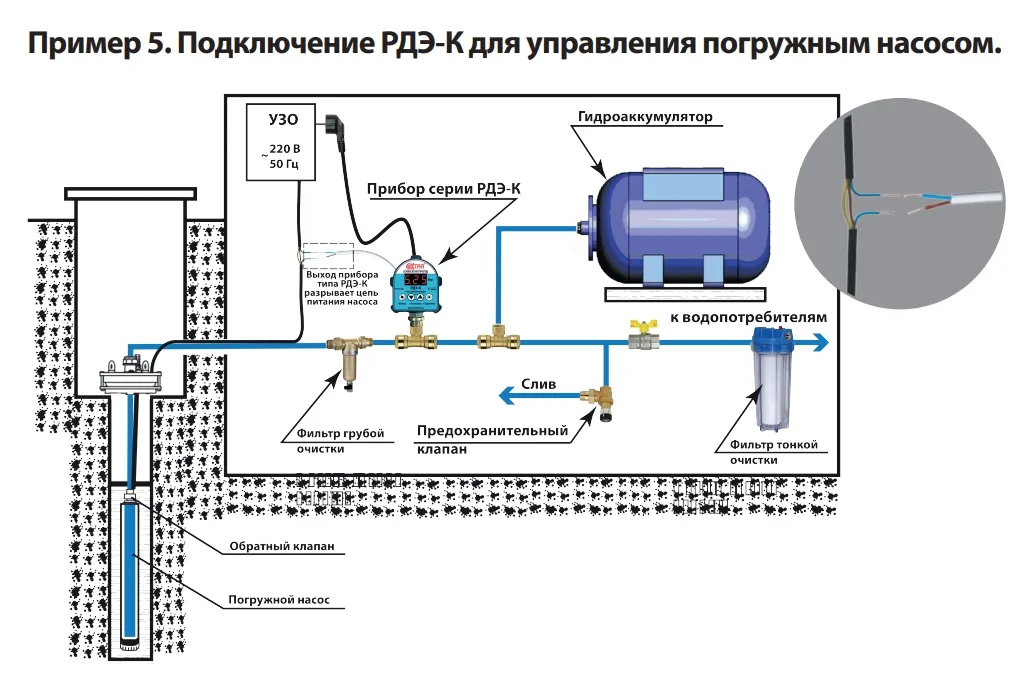 - Реле давления воды РДЭ-К-10-2.2 — 1 шт.