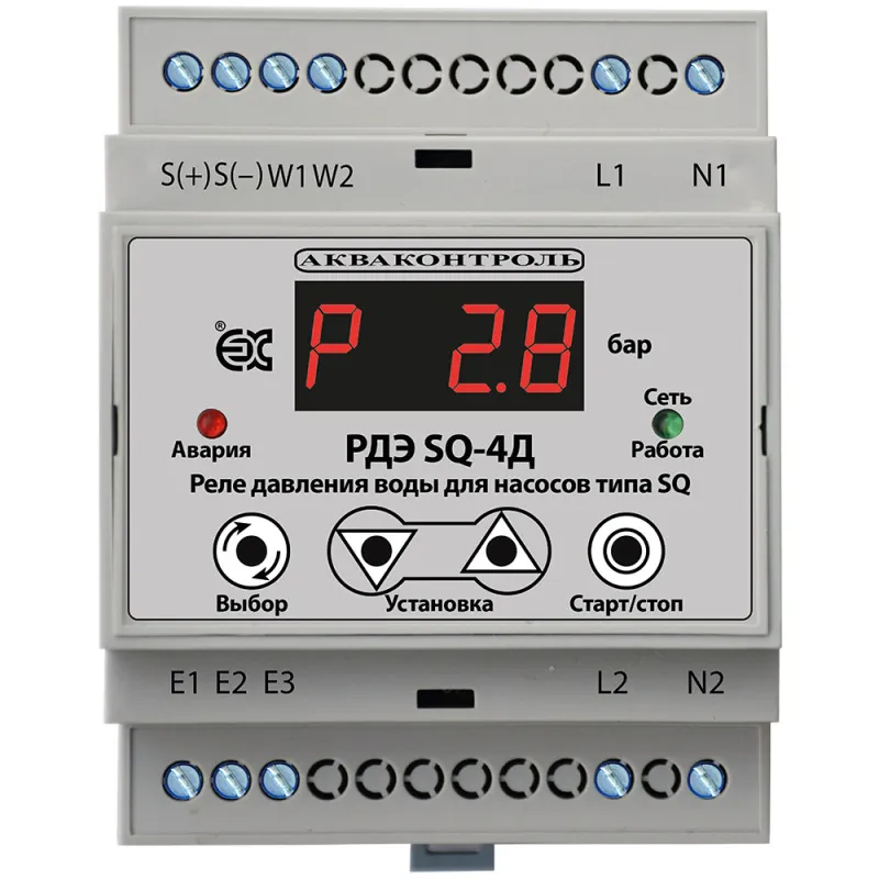Реле давления воды с выносным датчиком 4-20 мА для насоса типа SQ Extra Акваконтроль РДЭ SQ-4Д-230-95-1/0-10 2604122401