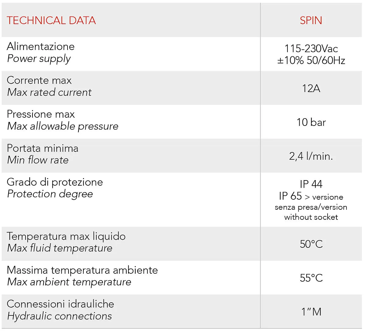 Характеристики товара Реле потока Italtecnica SPIN SF-MMXX-64-000