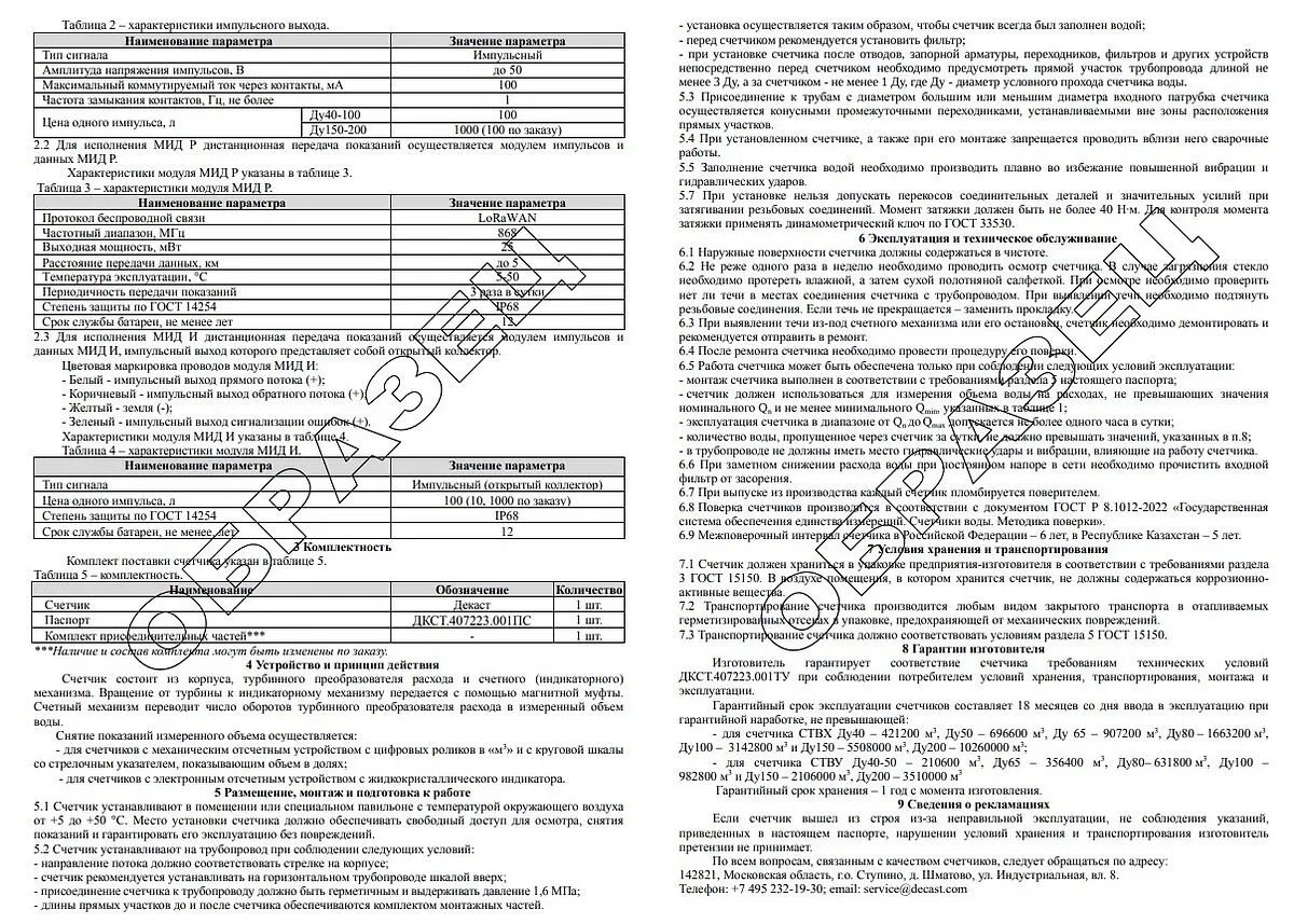 Характеристики товара Счетчик воды Ду150 Декаст СТВХ-150 78-150-01
