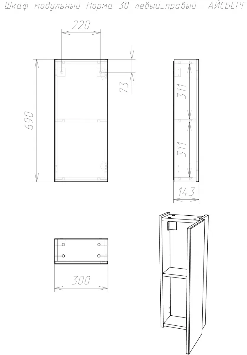Характеристики товара Шкаф Айсберг Норма 30 белый DA1647H