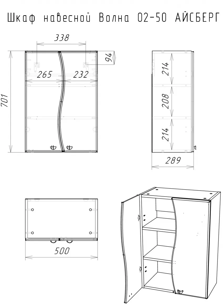 Характеристики товара Шкаф двухстворчатый Айсберг Волна 02-50 белый DA1065HR