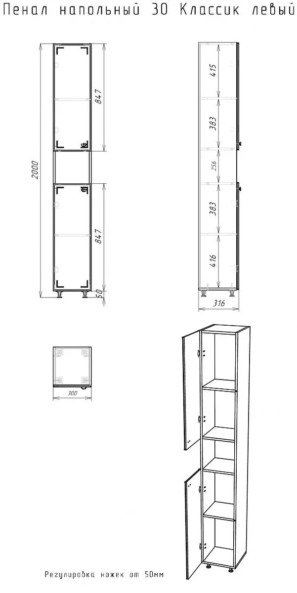 Характеристики товара Шкаф-пенал напольный Айсберг Классик 30 L белый DA1007P