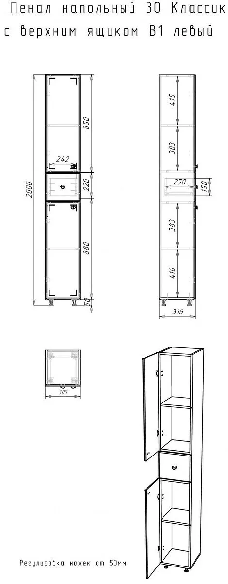 Характеристики товара Шкаф-пенал напольный Айсберг Классик 30 L белый DA1009P