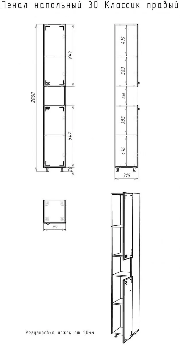 Характеристики товара Шкаф-пенал напольный Айсберг Классик 30 R белый DA1008P