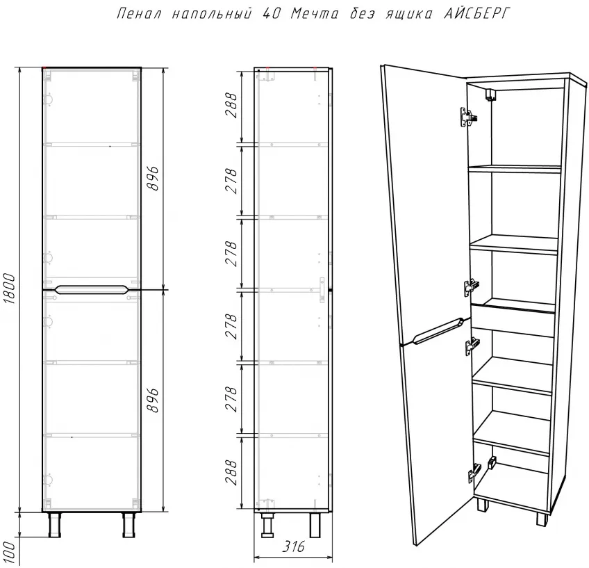 Характеристики товара Шкаф-пенал напольный Айсберг Мечта 40 белый DM2503P