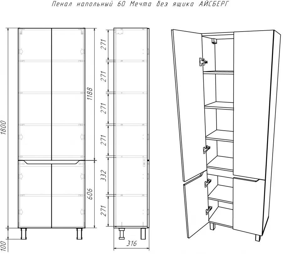 Характеристики товара Шкаф-пенал напольный Айсберг Мечта 60 белый DM2501P