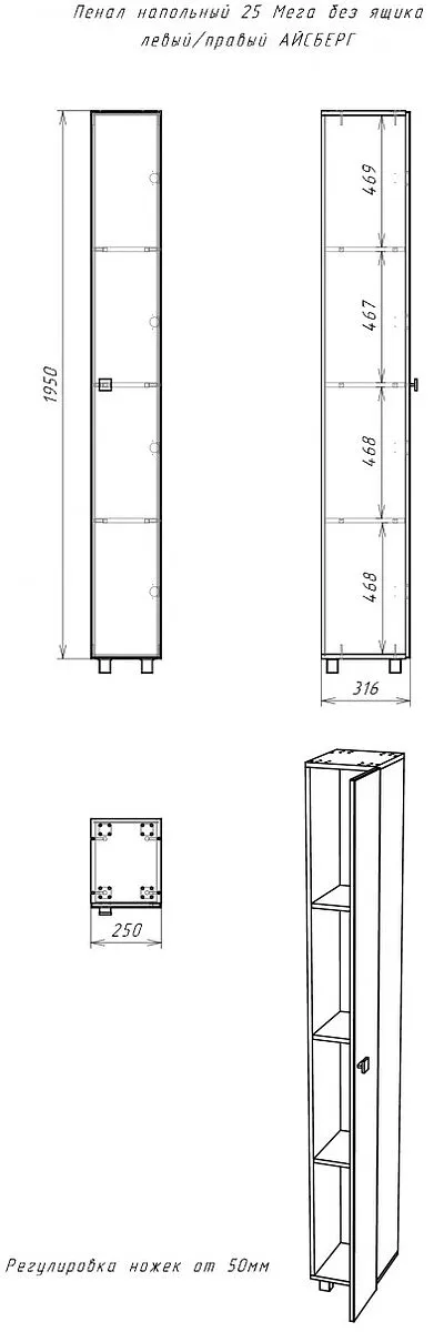Характеристики товара Шкаф-пенал напольный Айсберг Мега 25 белый DM4608P