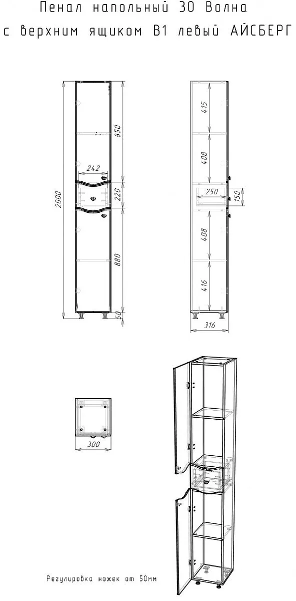 Пенал напольный 30 Волна с верхним ящиком В1 левый АЙСБЕРГ– это функциональное решение для хранения в ванной комнате. Он станет незаменимым предметом мебели для ванной, обеспечивая порядок и удобный доступ к необходимым вещам. Мебель представлена в безупречном белом цвете с глянцевым покрытием, что добавляет элегантности и стиля.<br>Изготовленный из ЛДСП, МДФ и плёнки ПВХ, этот шкаф отличается высокой прочностью и долговечностью. Напольное исполнение удобно располагается в любом уголке комнаты, используя пространство с максимальной эффективностью. Шариковые направляющие полного выдвижения обеспечивают легкость доступа к содержимому ящика, что делает его использование комфортным.<br>Одним из главных достоинств является наличие одного ящика, который идеально подходит для хранения различных принадлежностей. <br>Шкафчик в ванную не только функционален, но также поставляется в собранном виде, что избавляет вас от необходимости заниматься сборкой мебели. Гарантия на изделие составляет один год, что подтверждает его качество и надежность.<br>Этот узкий шкаф идеален для маленьких пространств. Шкаф напольный легко вписывается в интерьер благодаря своему универсальному дизайну. Удобная полка в ванной напольная предлагает место для дополнительных аксессуаров или демонстрации декорирующих элементов.<br>Купить шкаф для ванной – значит обеспечить себя удобством и практичностью на долгие годы. Это решение гармонично дополнит любую мебель для дома и станет стильным акцентом в вашем интерьере.<br>Выбор шкафа пенал узкого формата поможет оптимизировать пространство вашей ванной комнаты уважая ее дизайн и функциональность. С данным предметом мебели хранение станет более организованным. Шкафчик для ванной будет достойно смотреться среди другой мебели в ванную комнату.<br><br>Пенал напольный "3D" 50 В1 с Корзиной для белья Домино станет превосходным дополнением вашей ванной комнаты. Такое напольное решение подходит для хранения различных принадлежностей, требующих порядка и удобства в использовании. Каждая деталь мебели продумана до мелочей, что превращает её в функциональное и стильное пространство хранения. Шкаф-пенал выполнен из качественного материала с корпусом из ЛДСП и фасадом из МДФ с эмалевым покрытием, что гарантирует долговечность изделия. Гармоничный дизайн серии 3D добавит в вашу ванную комнату современные акценты, подчёркивая вкус и стиль владельцев. Фрезеровка на фасаде придаёт индивидуальность каждому изделию. Наличие выдвижного ящика создаст дополнительное удобство и оптимизирует хранение внутри шкафа. Полки компактно размещают все необходимые предметы личной гигиены или мелкие аксессуары. Это позволяет поддерживать порядок и обеспечивает лёгкий доступ ко всем необходимым вещам. Особенности конструкции включают петли с доводчиком от BOYRD, что делает использование мебели комфортным и бесшумным. Вы больше не услышите раздражающих хлопков при закрывании дверец. Шкафчик поступает к вам уже в собранном виде — это здорово экономит время и снижает хлопоты по сборке. Корзина для белья является ещё одним полезным элементом этой мебели для ванной комнаты. Она обеспечивает аккуратное хранение вещей для стирки, что особенно ценно в ограниченных пространствах современных ванных комнат. Ключевая цветовая палитра изд
