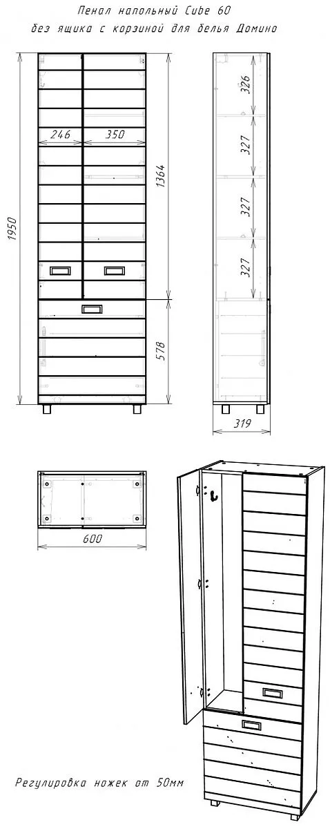 Характеристики товара Шкаф-пенал напольный Домино Cube 60 белый DC5014P