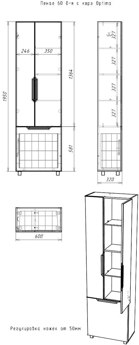 Характеристики товара Шкаф-пенал напольный Домино Optima 60 белый DO1908P